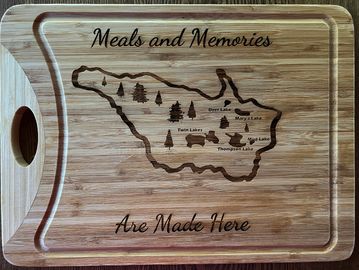 12" x 9" x .6" cutting board. Customized to your design and message.