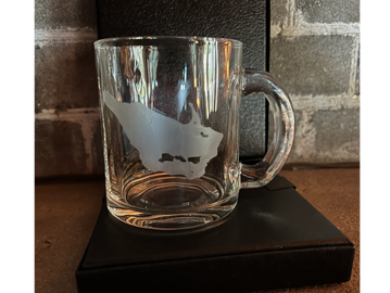 10 oz glass coffee mug. Etched with a design of your making.