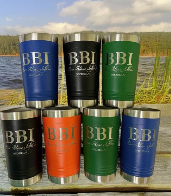 16 oz tumblers. Customized. Pricing is based on the size and make of the tumbers and starts at $28 each with increasing costs for brand names such as Yeti or Tervis. Price includes all engraving regardless of the amount. Pricing does not include shipping.
